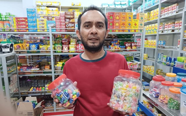 Todo tipo de dulces se pueden obtener fácilmente. Muchas pequeñas tiendas cerca de mi casa venden muchos tipos de dulces. Este es un problema aparte para mí, porque les prohibí a los niños comprar dulces, porque les da caries, todavía están creciendo.