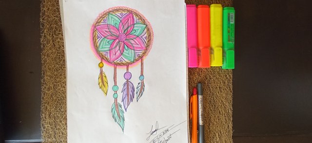 @jesuslira a través de su creatividad dibuja un lindo atrapasueños que en lo personal me encanta, pues tiene algunos de mis colores preferidos.