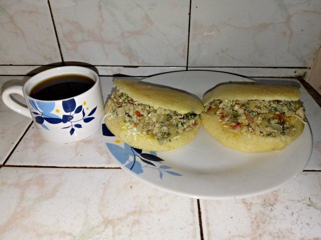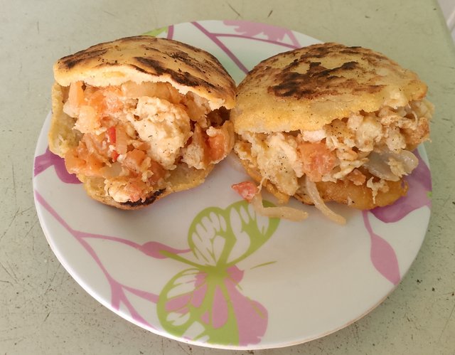Con sabor Venezolano: Arepa rellena de revoltillo con tajadas