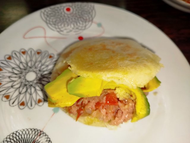 Con sabor Venezolano: Arepa rellena de Aguacate y mortadela guisada