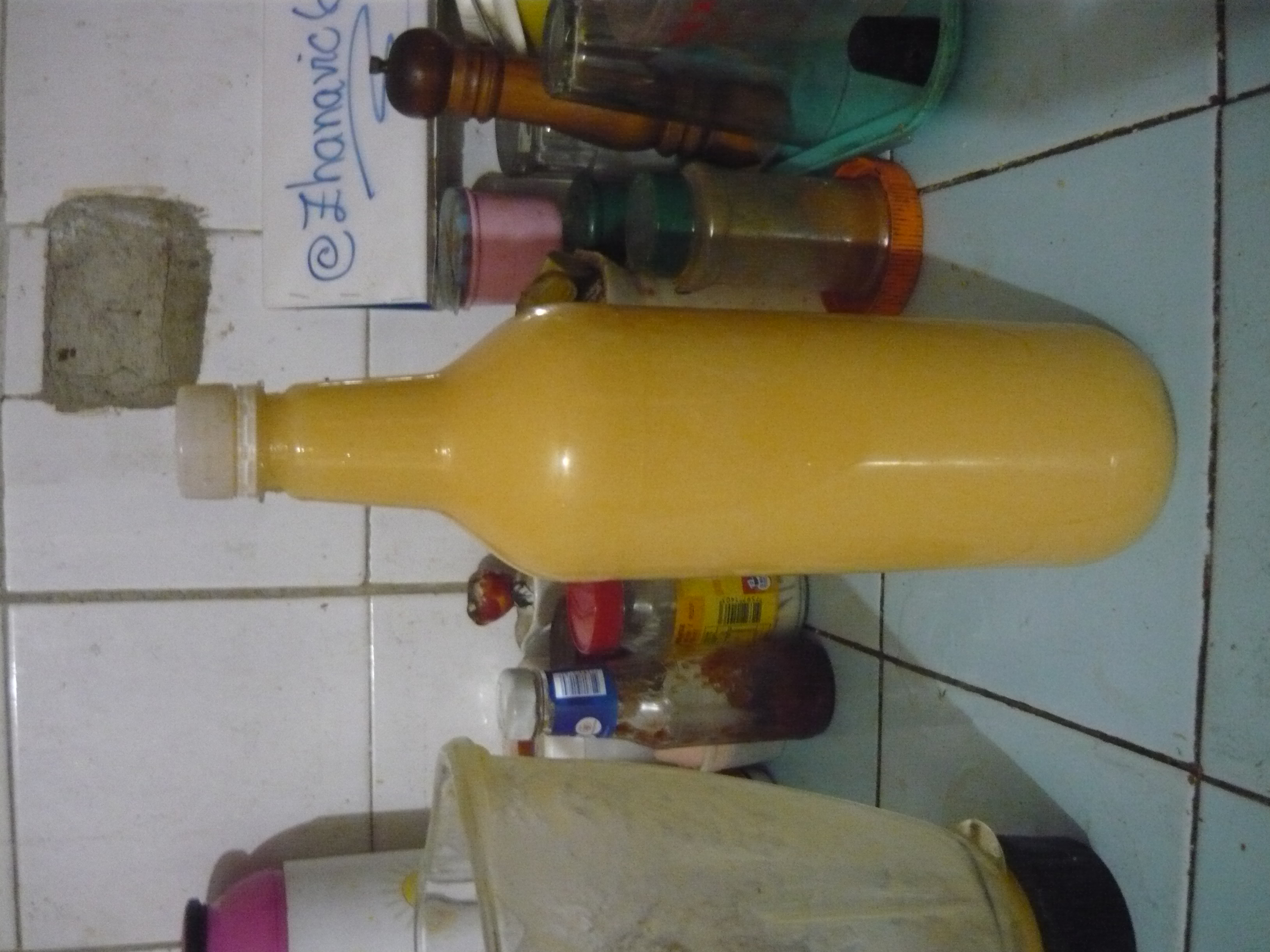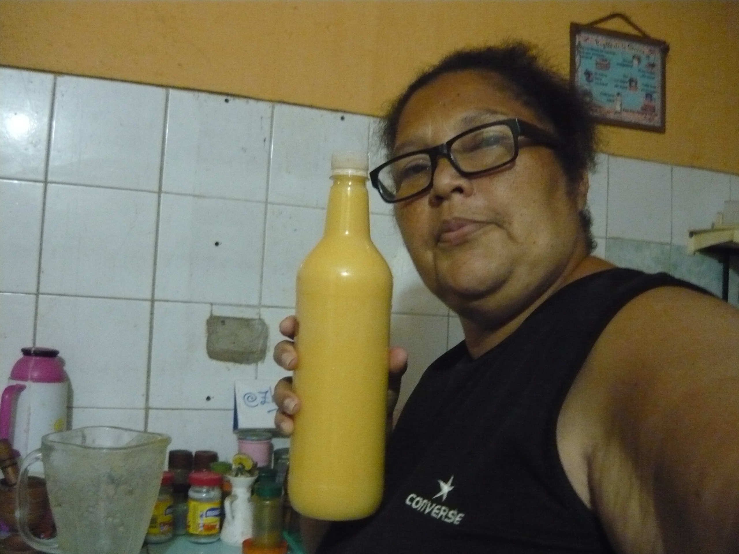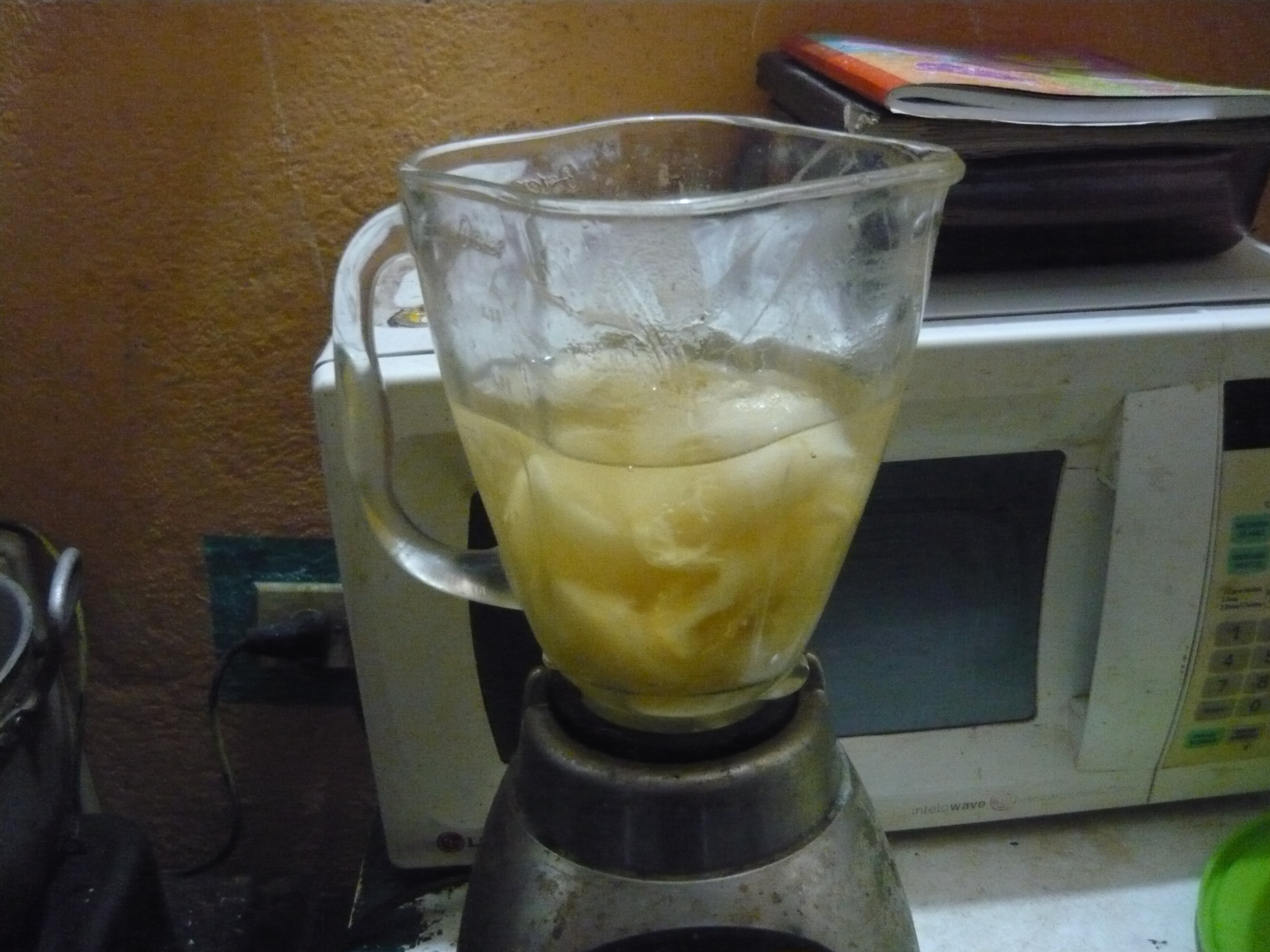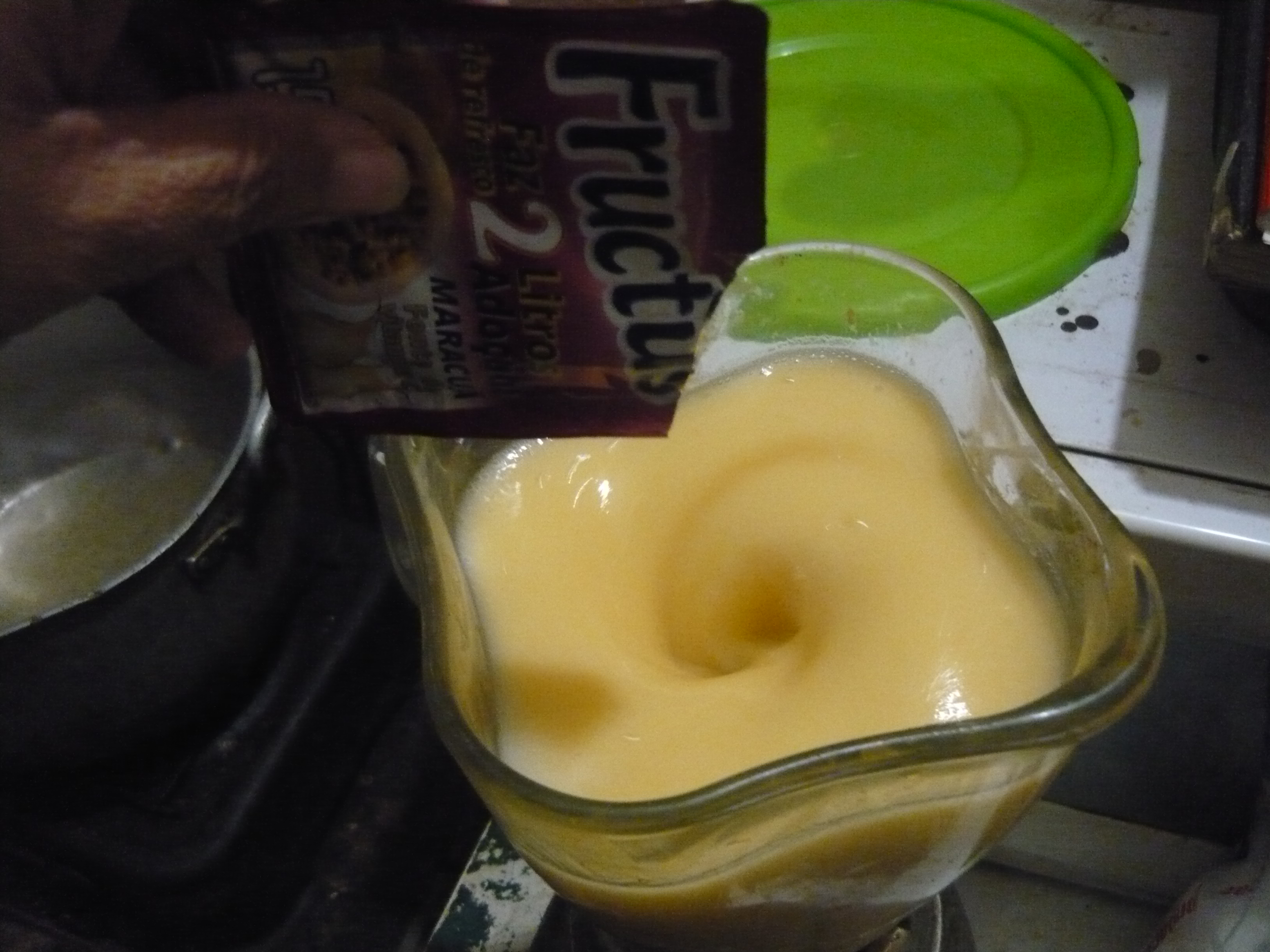 4.- Ahora a licuar una parte con parte del agua se le agrega un poco mas, tambien azucar se va probando y para darle mas gusto le agregue parte de un sobre de jugo de parchita, tambien puede ser la misma fruta pero no tenia, ya que mi hermano se la llevo ja ja.