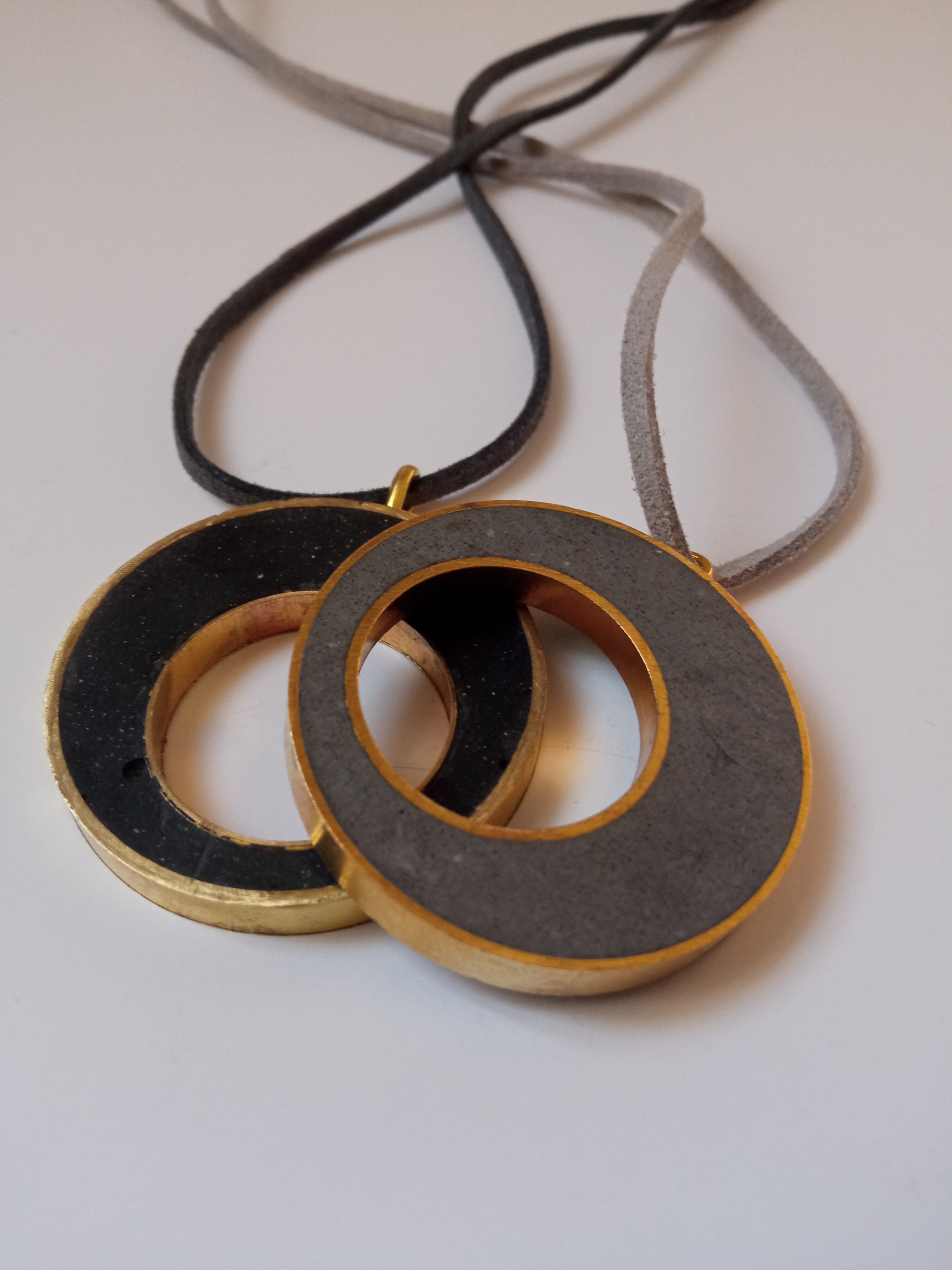 A handcrafted pendant made of light concrete with black pigment to make a contrast with color of the Brass .