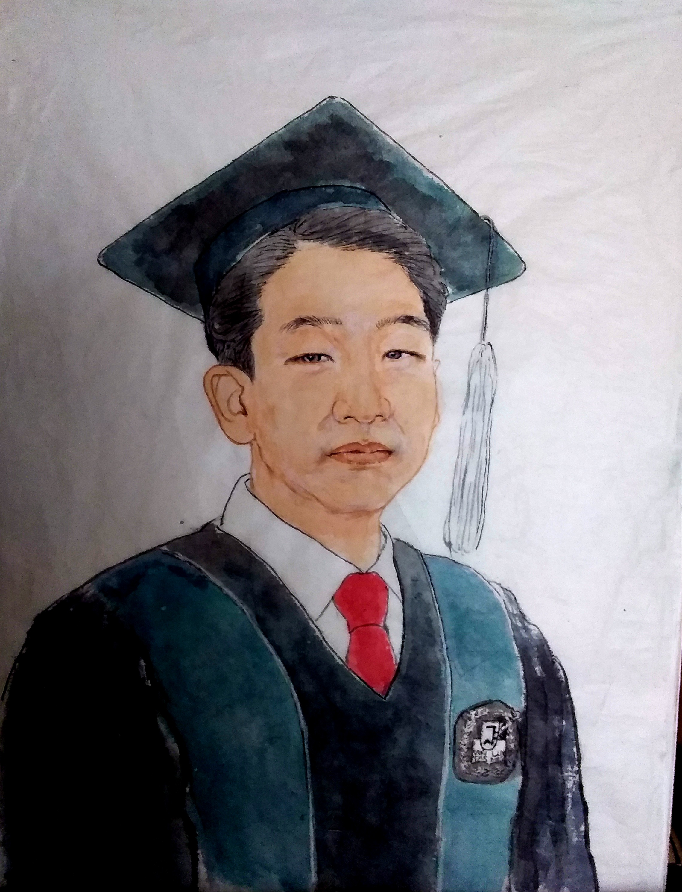 기념으로 졸업 까운 입은 모습을 그렸다.