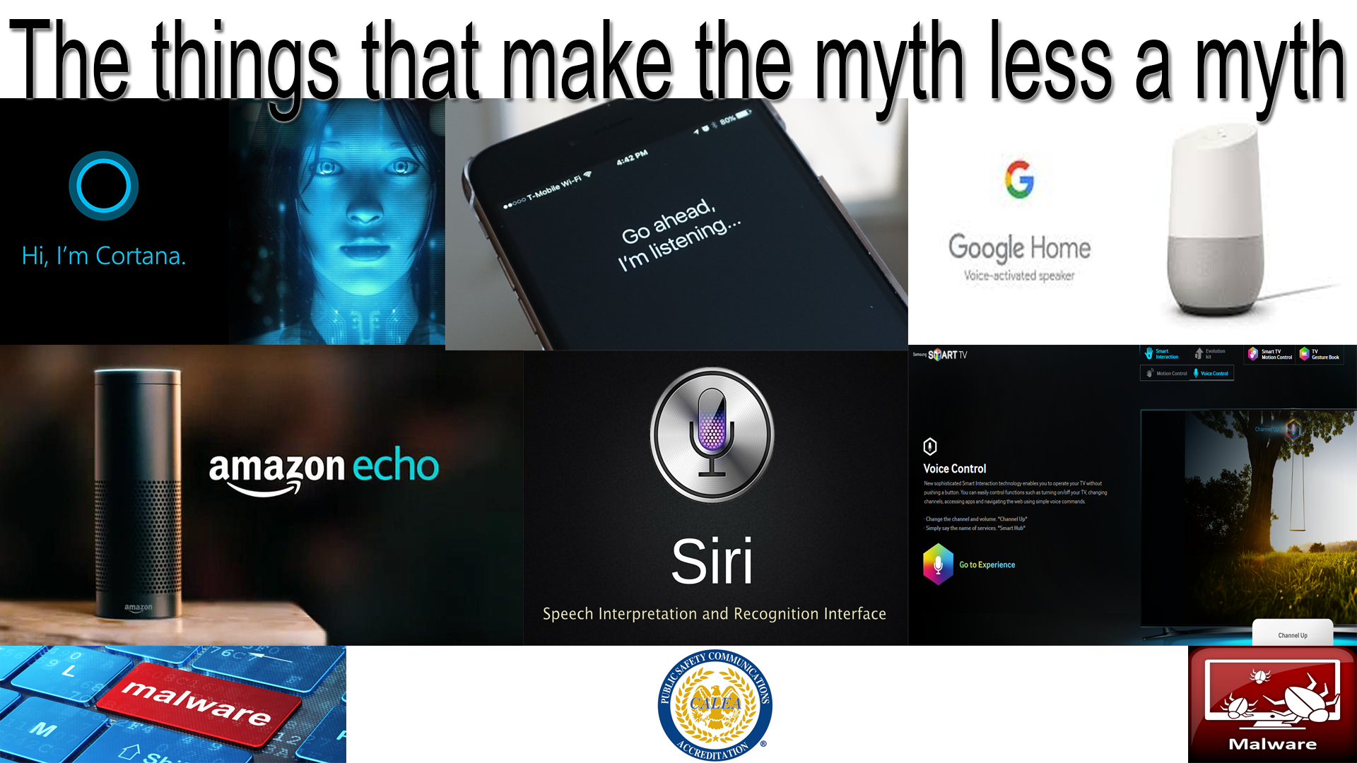 If there are smart agents and devices locally that listen for keywords they MIGHT be able to send signals and indicate that you are a person of interest. So are there any devices that might do this? Well, it'd likely come in the form of things that listen to your voice and act helpful. Sound familiar? Siri? Amazon Echo? Alexa? Cortana? Other devices that listen for voice commands?