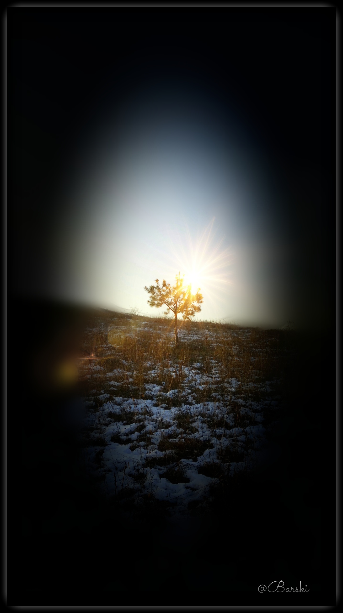 Dear @ninahaskin, provided a photograph of the evening landscape, in the foreground, of which two small trees flaunt. Their silhouettes fit beautifully into the surrounding landscape.