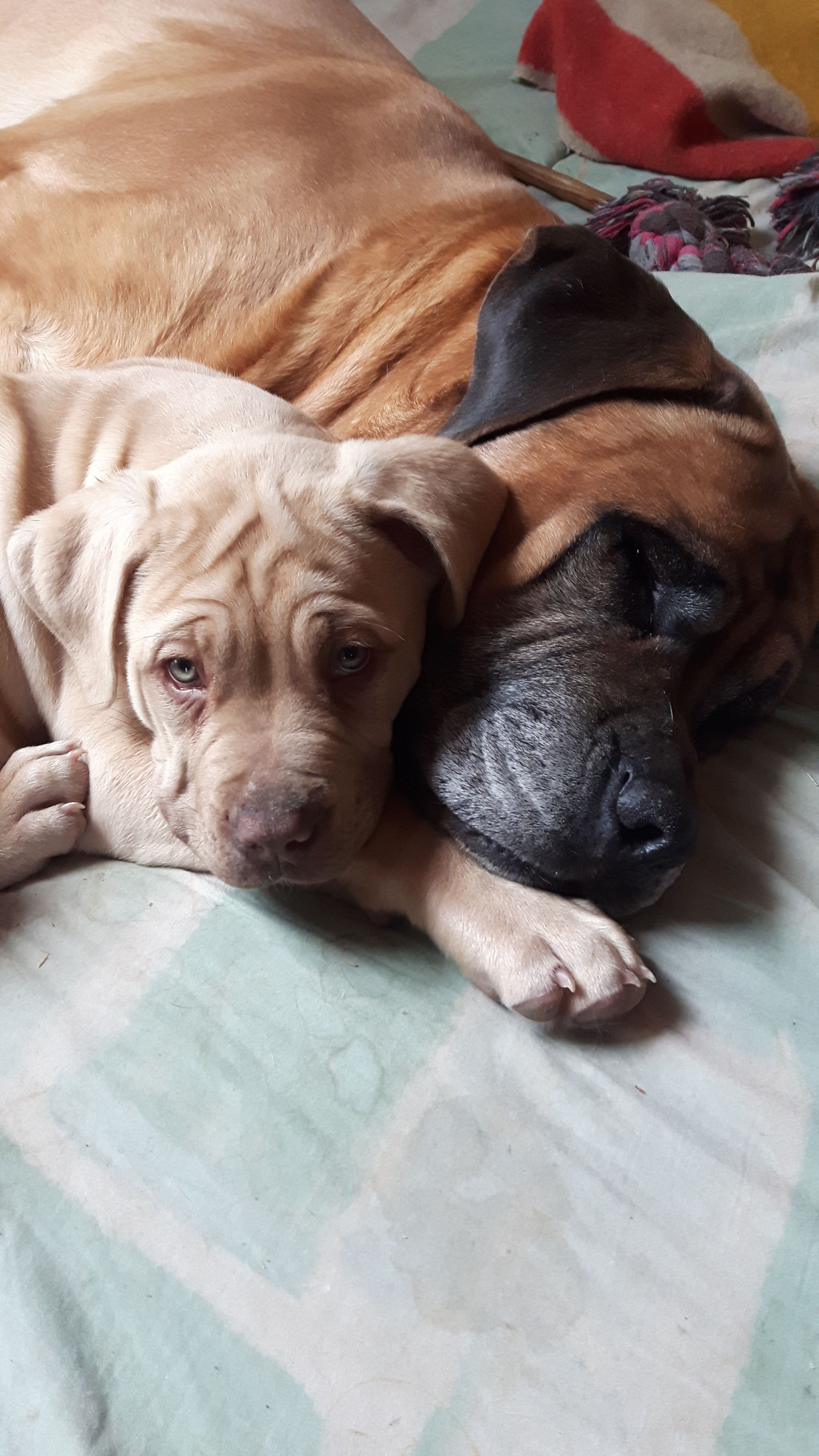 This is my mastiff momma with her litter of pups. Cleo is such an amazing part of our family. We live off grid, and she has so many roles here. She protects, she hunts, but most importantly she LOVES.
