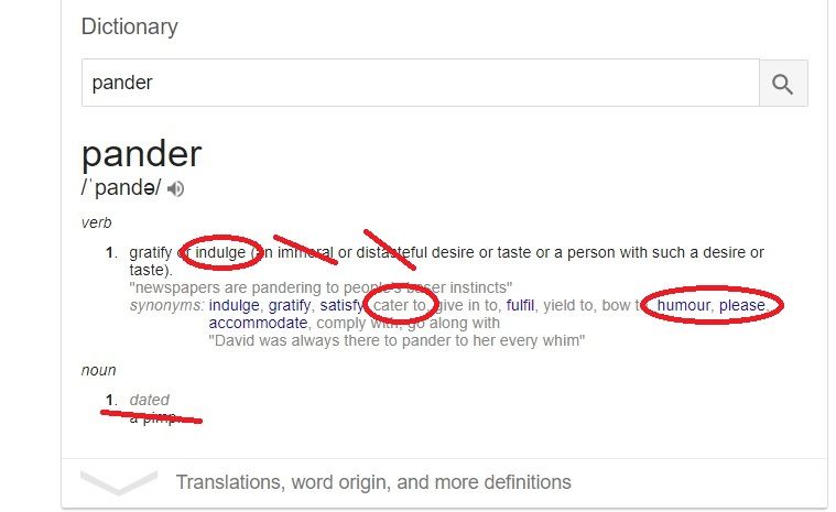 - This week I would be most pleased with and give preference to entries having to do with the Pander to Me! Writing contest, its fictional backstory and other related tangents.