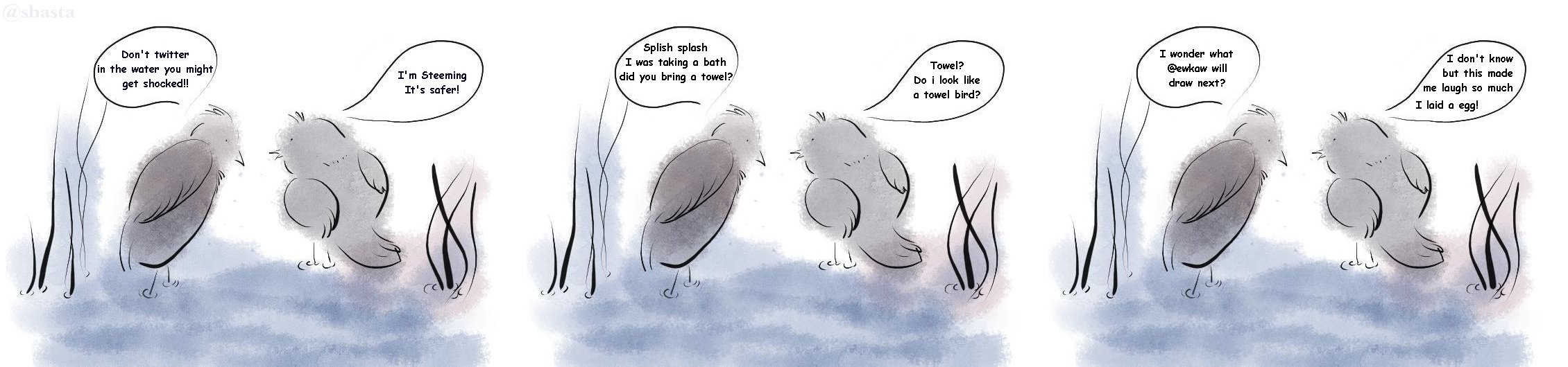 Birdie on right says: "You want to drown me, don't you?! You know I can't swim... and with my weight, I'll just sink like a stone!" 😒
