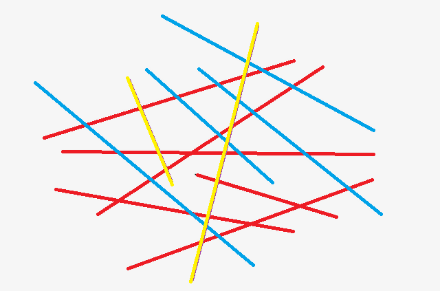 A1. I have highlighted the lines in the picture below to make the lines more clear for the viewers. So there are total 12 Lines. 6 Red, 4 Blue, and 2 Yellow.