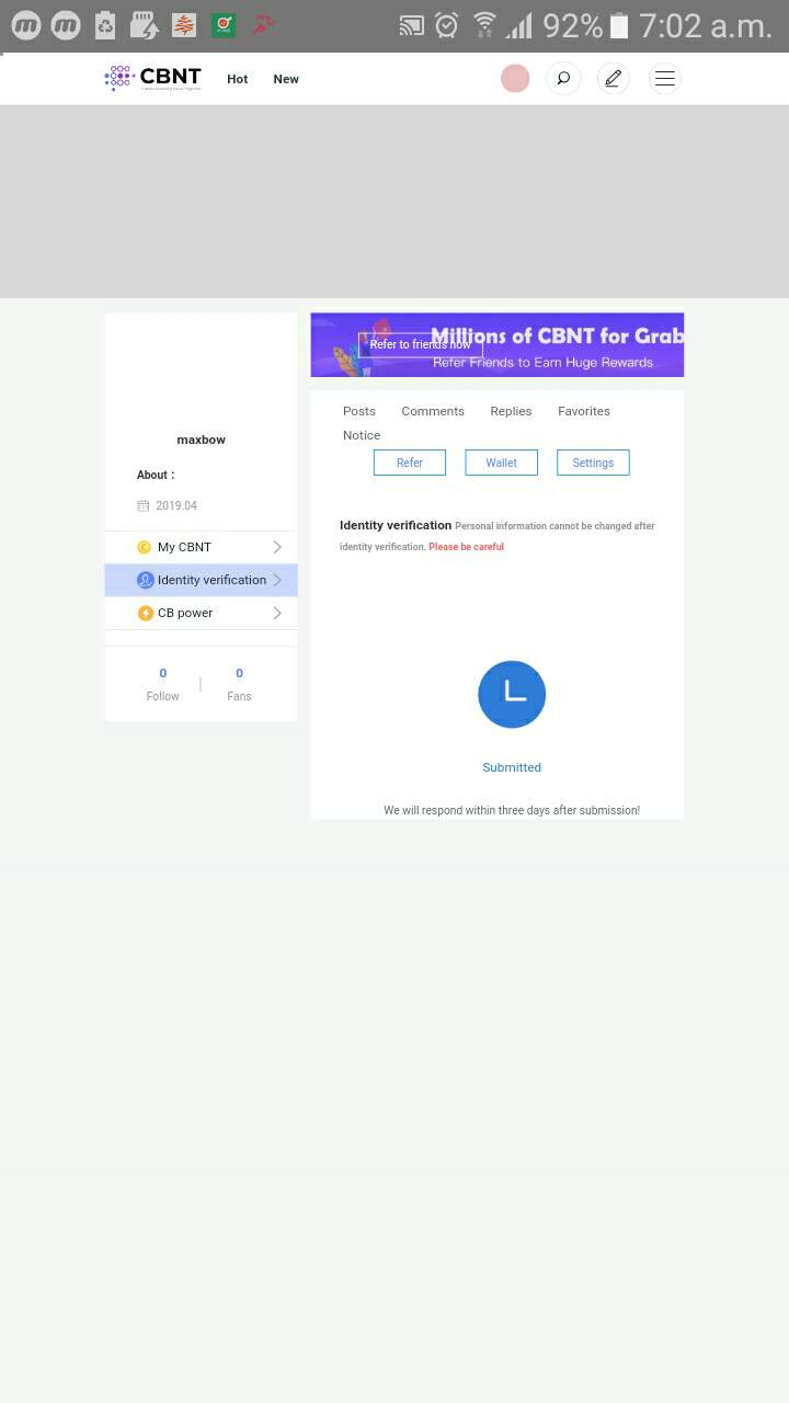 You’ll have to fill a KYC process to claim your free 3,000 CBNT ($90). This was put in the agreement to make sure people do not abuse this opportunity by making multiple accounts.