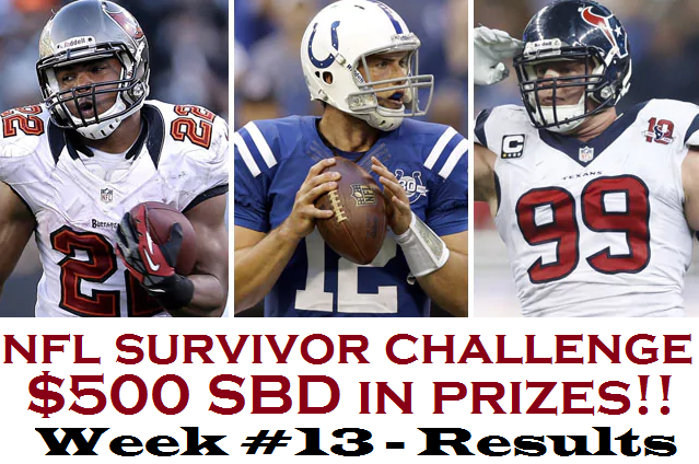 NFL Survivor Challenge - $500.00 SBD in PRIZES! WEEK #13 - RESULTS!!