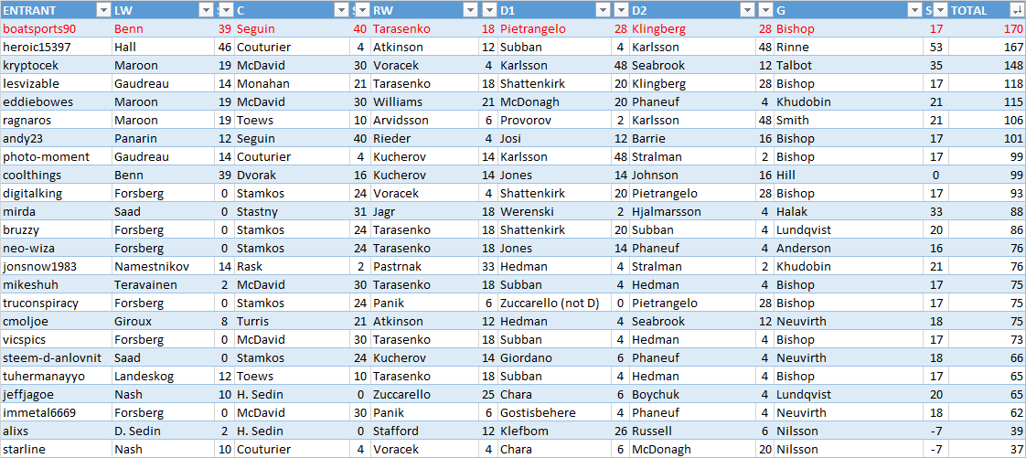 Here Are The Results For NHL - THE ULTIMATE LINEUP CONTEST! October 19th, 2017