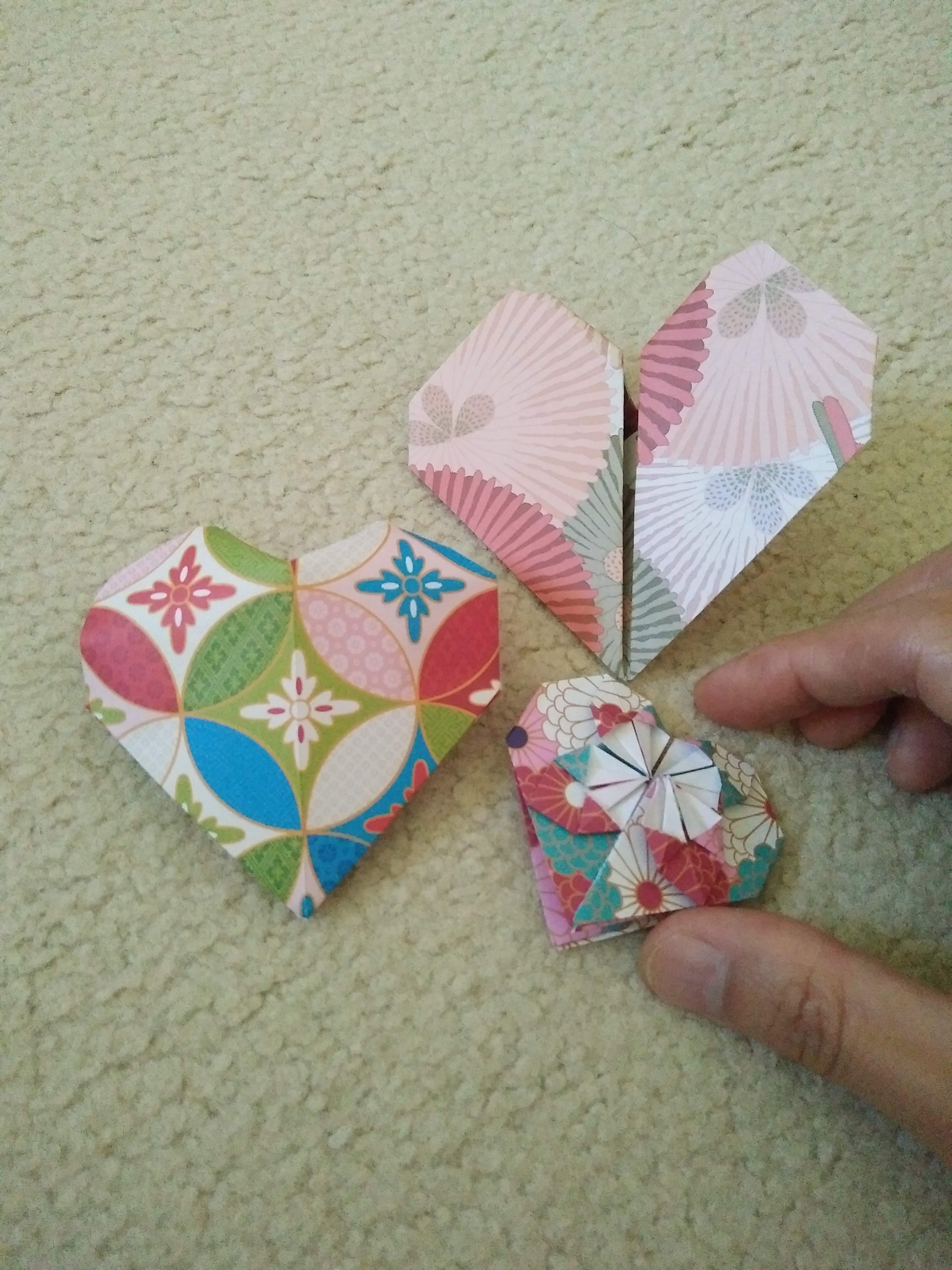 I have felt all these types of sensations in my heart (thankfully not all at the same time), so I have taken a picture of three origami hearts I have made to share with you. I think rather than feeling like you are unable to express your feelings of love in words (if this is the case), why not make something for someone that you love and let them know through action instead?