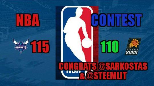 @steemlit and @sarkostas won with point 225 and New Orleans Hornets win (115-110), the prize will be awarded within 7 days of the contest post.