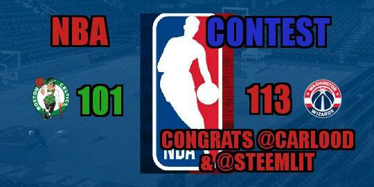@steemlit won with point 215 and @carlood won with point 213 and Washington Wizards win (101-113), the prize will be awarded within 7 days of the contest post.