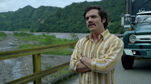 did pablo escobar have a beer belly like the actor and tacky white sneakers ?
