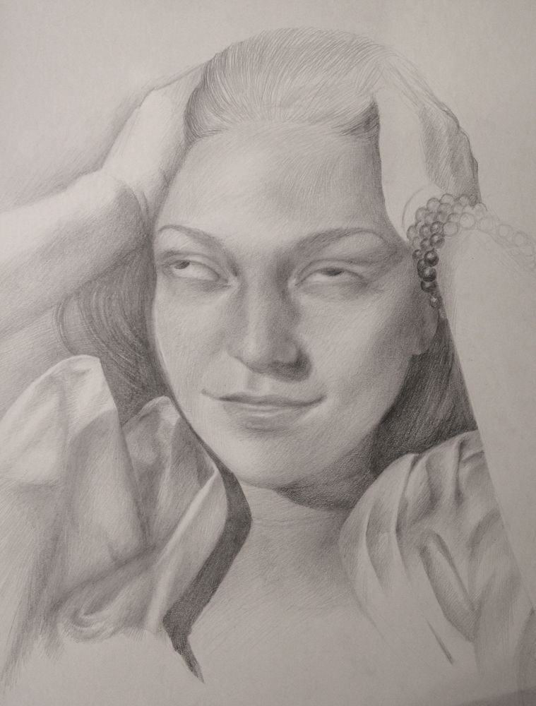 I am endlessly grateful for my muse and collaborator, Aoria Weaver. This drawing was from one of the off-moments in a photo shoot we did almost a decade ago. This muse is amused by something not in the scene.