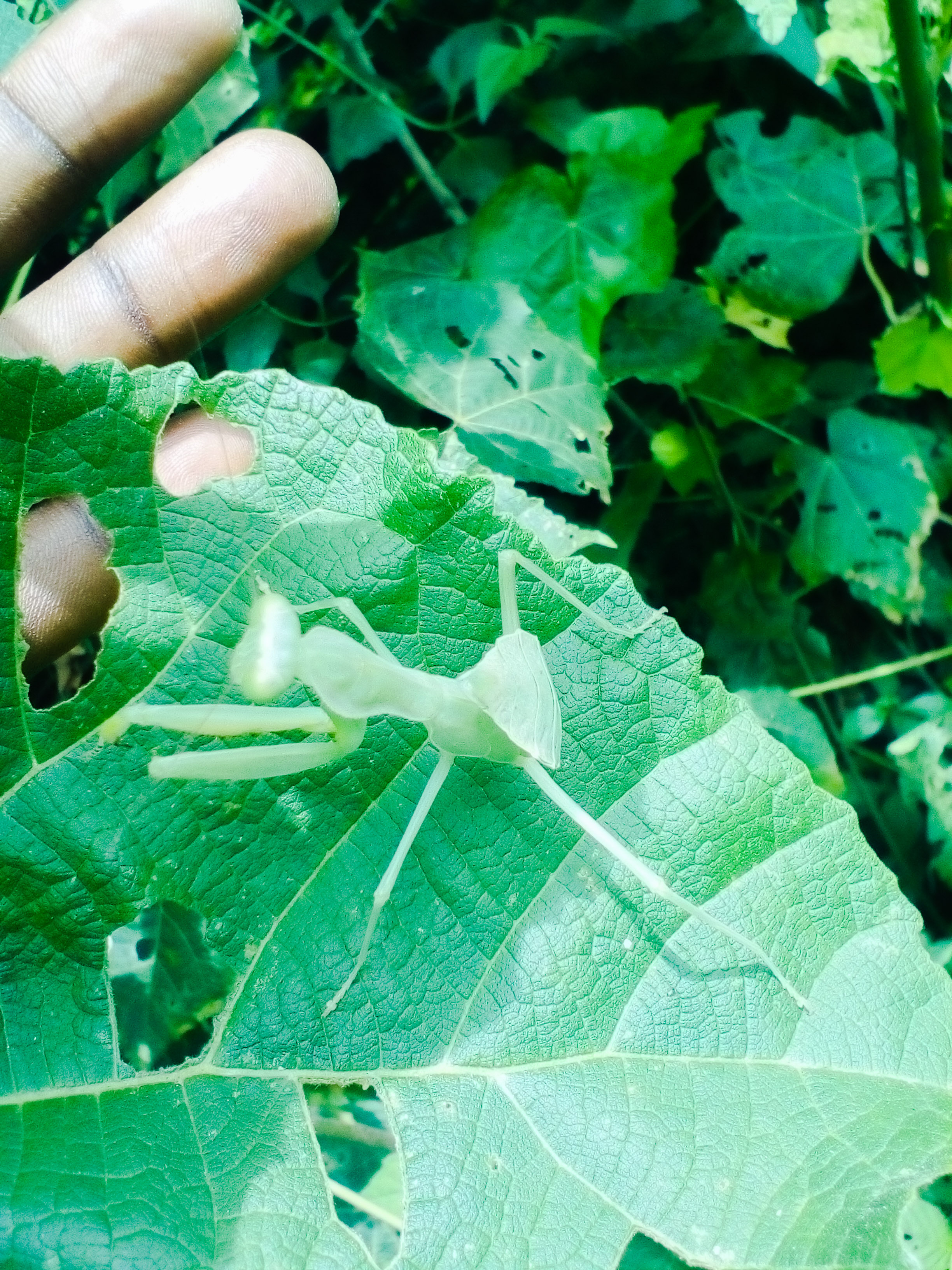 Bug on a spinach leaf while I am preparing to clean if for my vegetable soup.