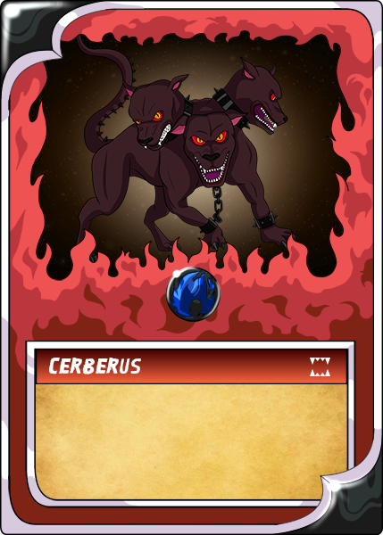 My favourite card is the Cerberus. Mean looking beast with scary, crazy eyes that looks like it just smoked a joint!