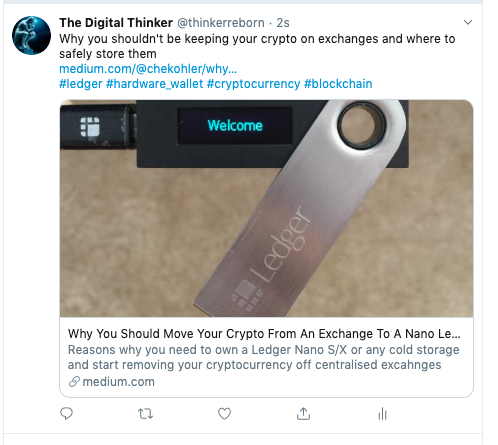 Posted on medium - https://medium.com/@chekohler/why-you-should-move-your-crypto-from-an-exchange-to-a-nano-ledger-immediately-caa96f4a1e4b