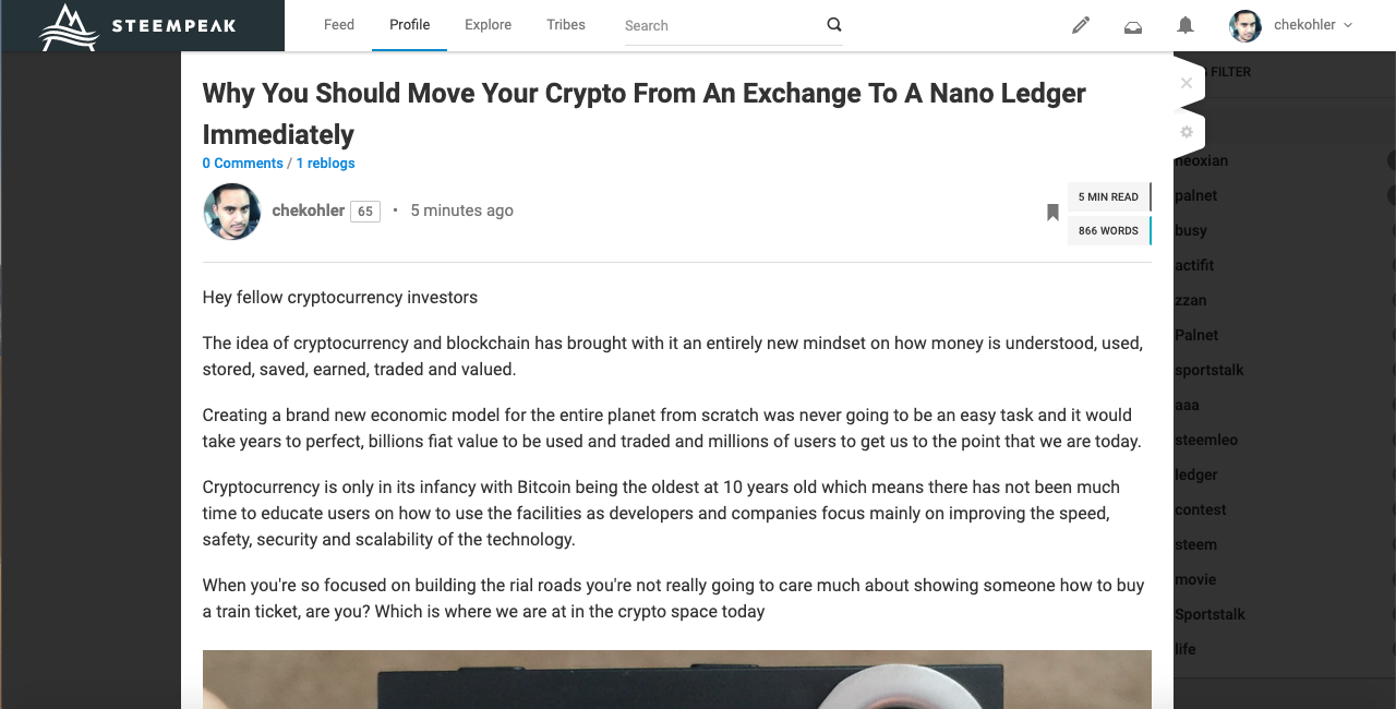 Posted on steemit - https://steempeak.com/@chekohler/why-you-should-move-your-crypto-from-an-exchange-to-a-nano-ledger-immediately