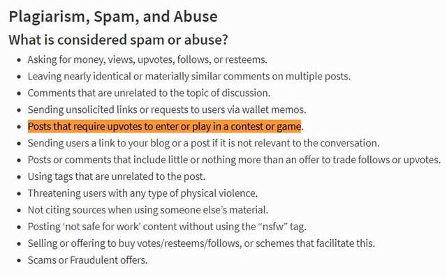 I probably used more words than necessary here but the main point is my requesting that you please make it clear that upvotes not be a requirement for entry. That way we can go after Johnny Vote Farmer for spam contests without them bitching about us not going after @soundwavesphoton.