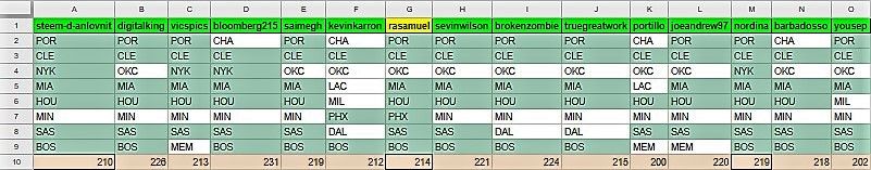 @rasamuel missed 1 game, going 7-1 to win the contest! The Total Points Scored in the Phoenix Suns @ Minnesota Timberwolves game was 214.