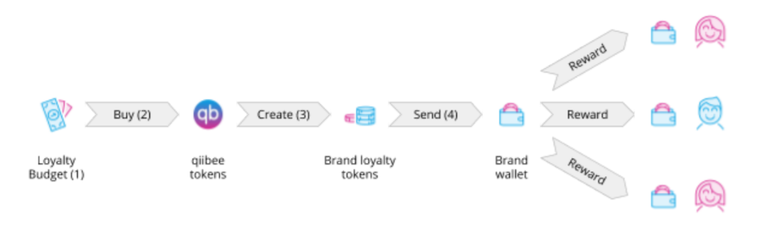 As explained above the platform is run on the qiibee token. The brand create a budget and make use of it to buy qiibee tokens which is then converted to brand tokens from which they can use to reward customers.