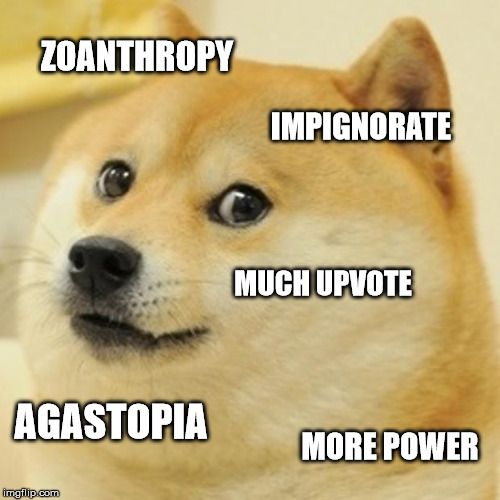 The best MEME that includes the proper use of the word "zoanthropy" posted in a comment below will win a large vote!