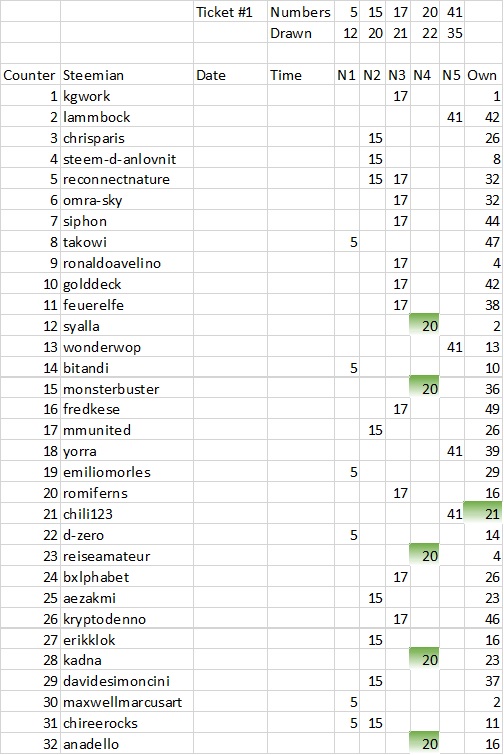 To prevent confusion with today's new contest I will not place a screenshot of these numbers. If you want you can check them by watching the short youtube video and in my transparency excel screenshot below.