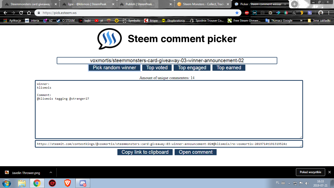 Today i am Giving away a rare steemmonsters card (JAVELIN THROWER) . Winner will be announced in my next giveaway post (next sunday 28.07.19)