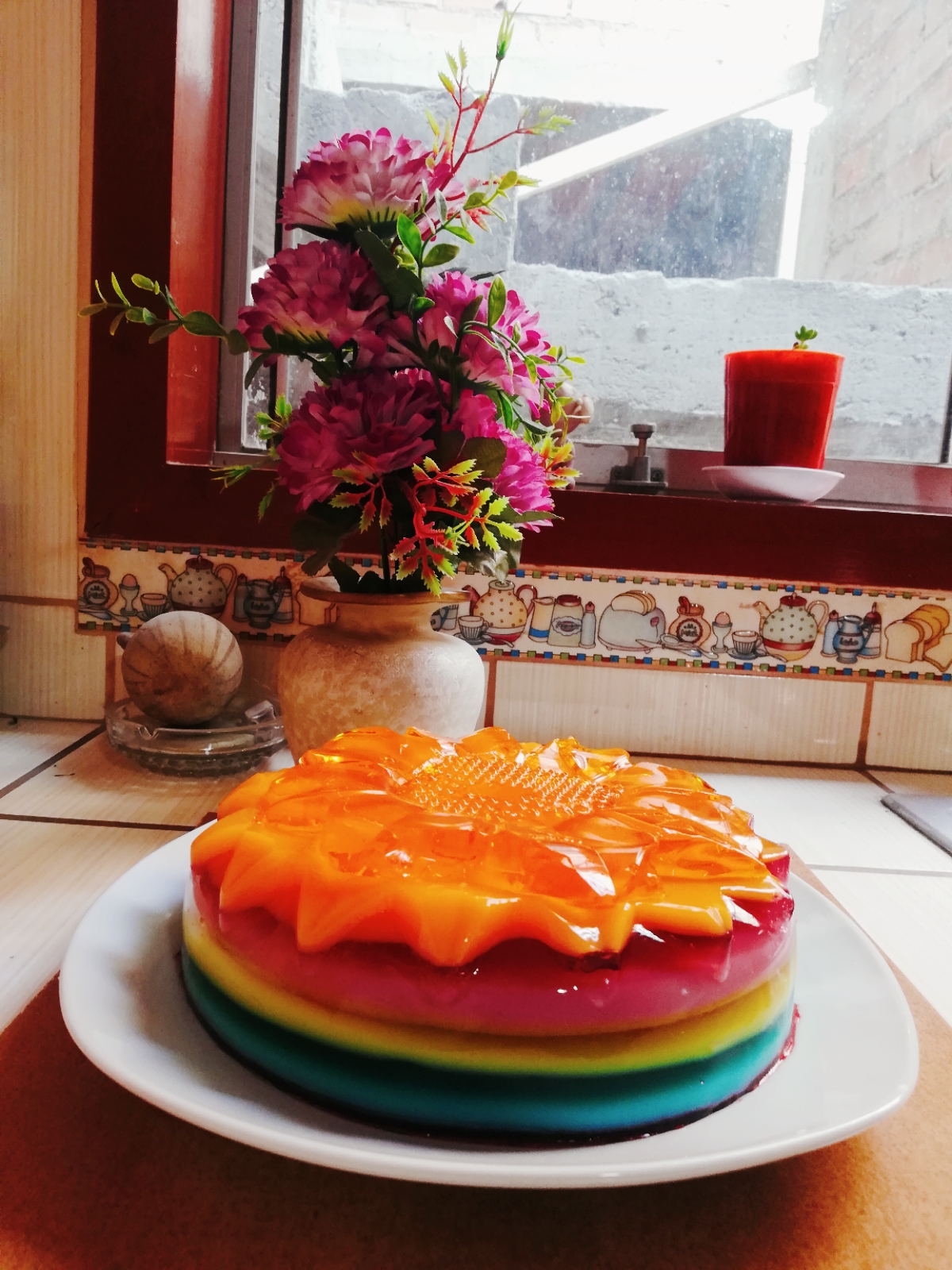 - Listo ahora puedes cortar la gelatina Arco Iris y compartir con amigos o familiares.