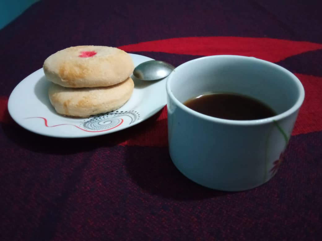 En el día de hoy mi querida y hermosa madre compro en la panadería unas ricas y deliciosas galletas de huevo, las cuales también se les dice galletas de puntos rojos, las cuales son muy sabrosas todas estas suculentas y maravillosas galleticas y si se le acompaña como lo hicimos hoy con un poco de cafe es uff super rico como pueden ver en la fotografía.