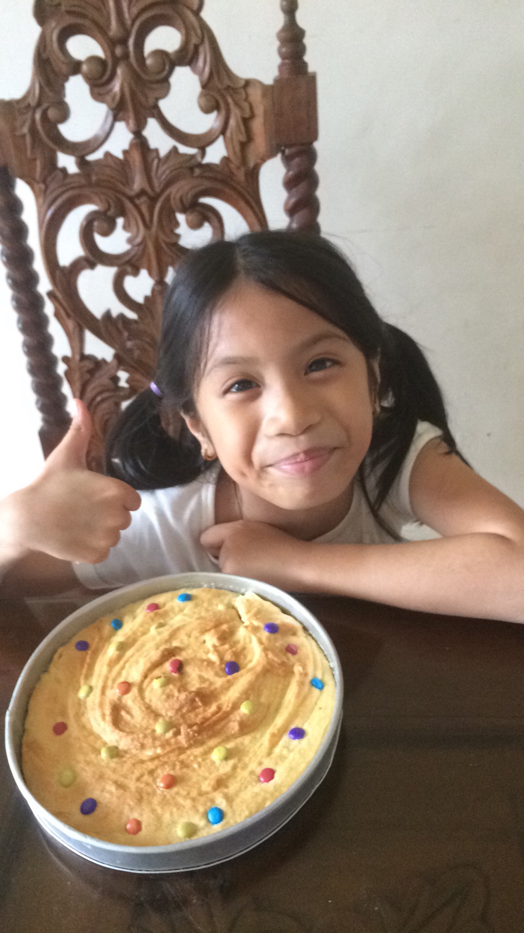 we placed the biggest cookie dough in a baking pan inside an electric turbo cooker,