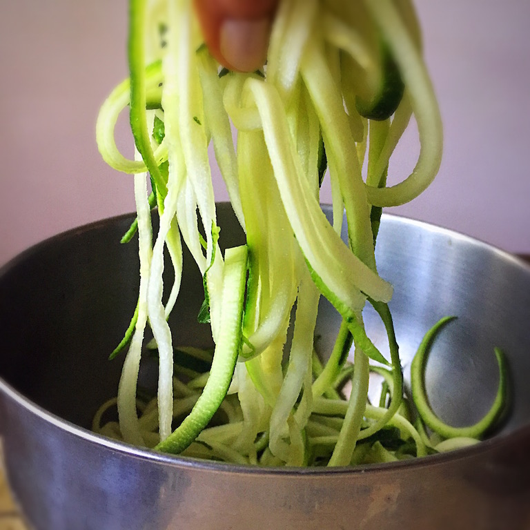 I sautéed the zoodles with some garlic and olive oil. After cooking the buckwheat noodles, I mixed the zucchini with the pasta. Serve with your favorite sauce.