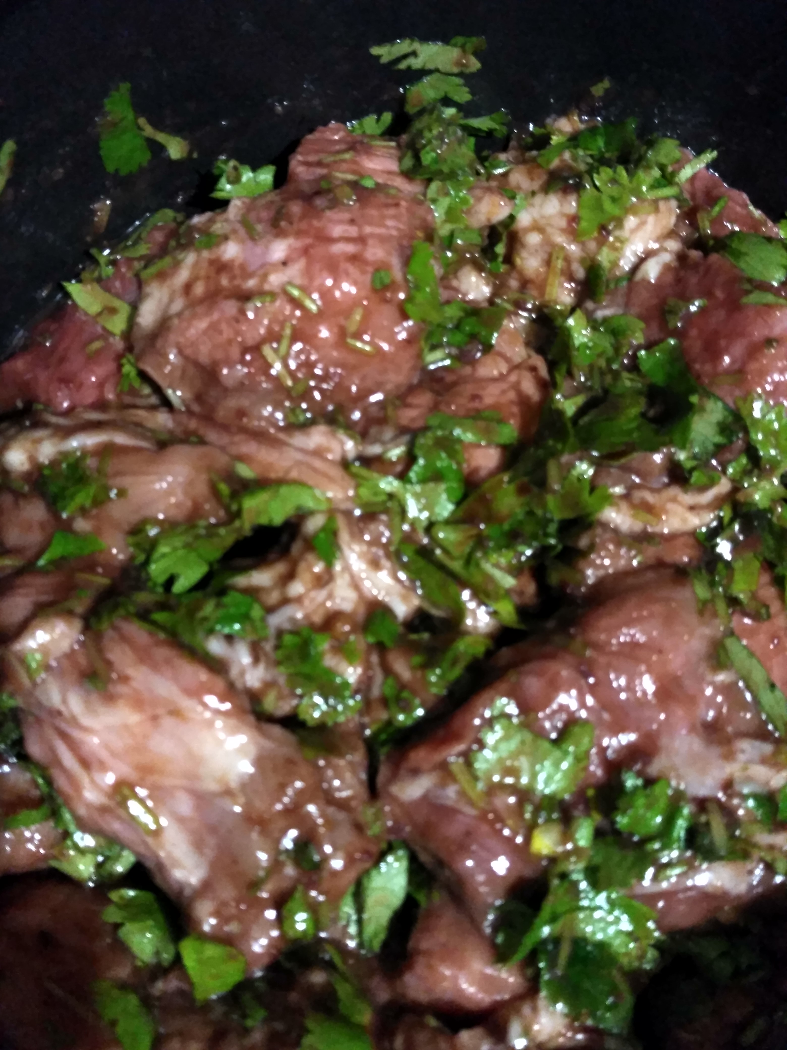 Cut the meat into small pieces (about 5 centimeters), add the sauce .