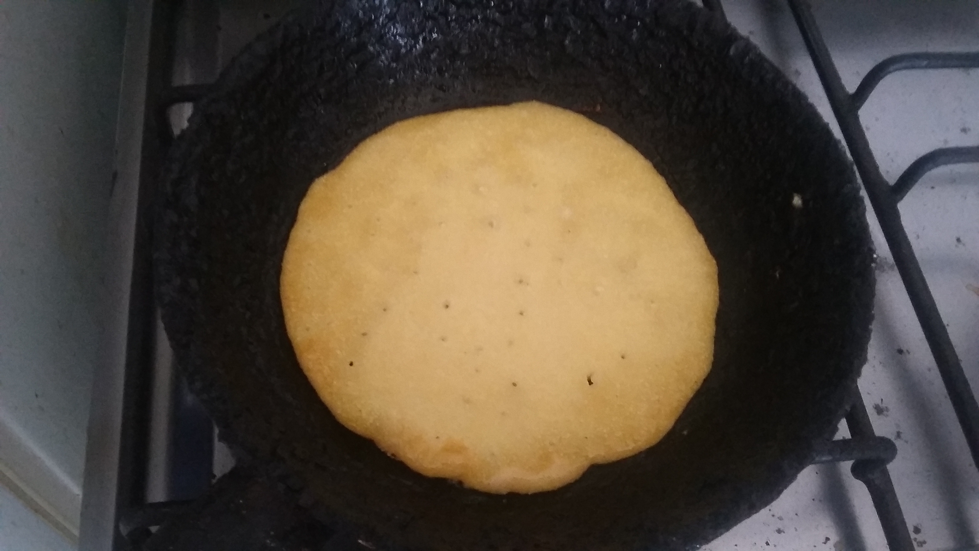 You just have to mix corn flour, water, milk, and a little sugar (not needed with the fresh sweet corn). Then you get a liquid mix, like pancake's, and put it on a hot pan with a little vegetable oil.