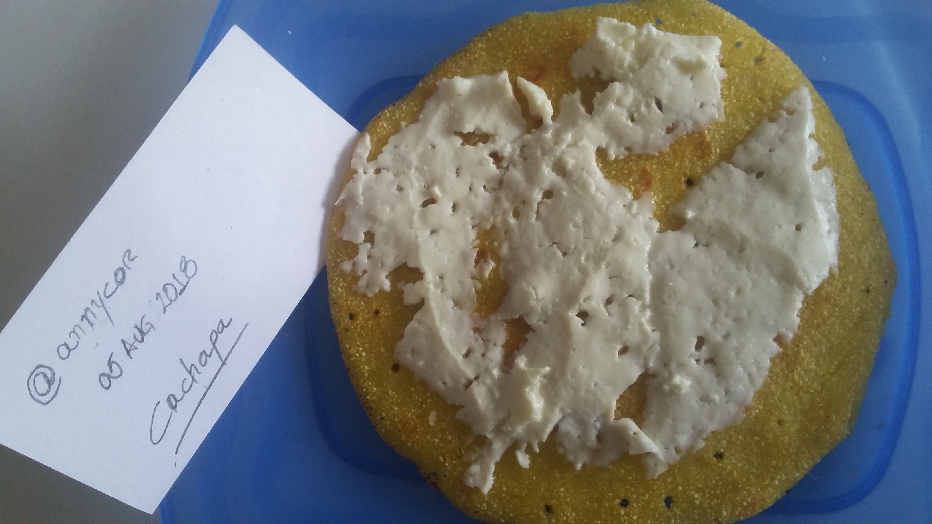 I decided to present a very traditional breakfast from Venezuela: la cachapa, a very simple but tasty meal. I made my cachapa with procesed ingredients when I have little time, but it tastes better with fresh sweet corn.