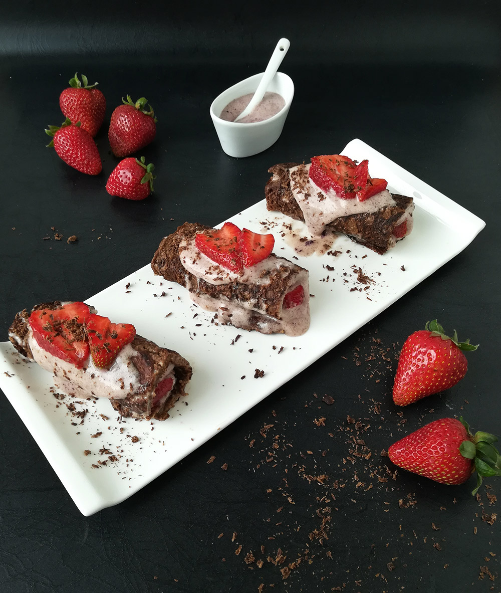 Mini carob crepes w/ Maqui nice cream + strawberries by @celestialcow