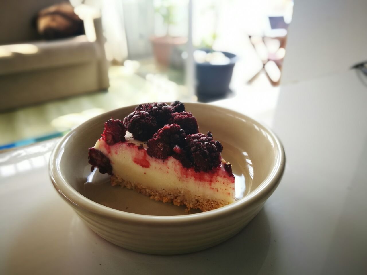 Hello all, here is my entry for this week’s competition. “No Bake” Mulberry Cheesecake.