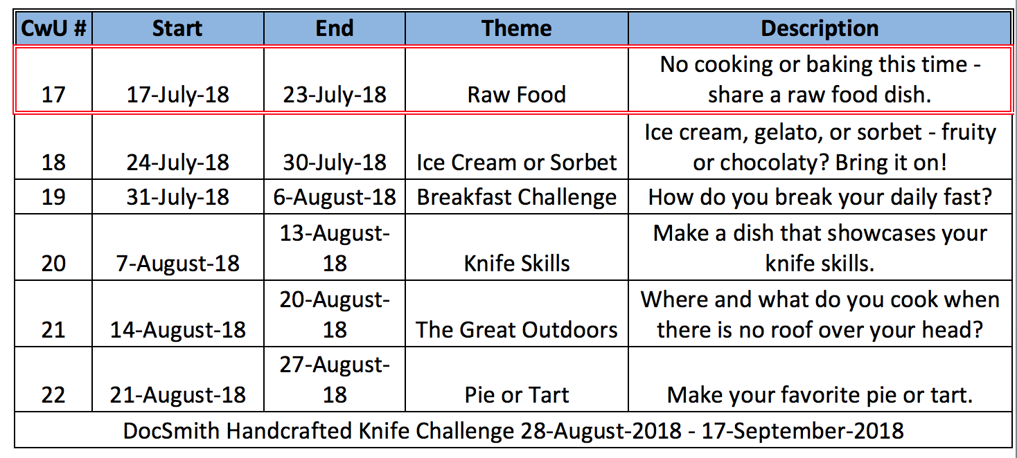 Now it is your turn. This week the Cook with Us team - @chefsteve, @pandamama and @offoodandart - would like to see what you can do when we take away your ovens, stoves and grills. Your only rule for this challenge is that no food in your dish can be heated above 40-49oC or (104-120oF). Be creative and think outside the box on this challenge. We look forward to seeing what you create!