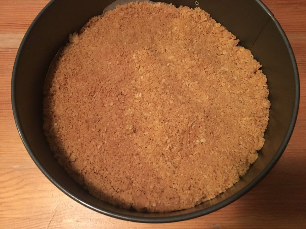 Crush biscuits with some butter and line in a springform pan