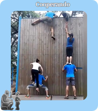 Imagínese a un grupo de muchachos que necesitan entrar a un parque temático para realizar una investigación; al encontrar la puerta cerrada inician una bella labor de cooperación, donde finalmente todos logran escalar la enorme puerta.
