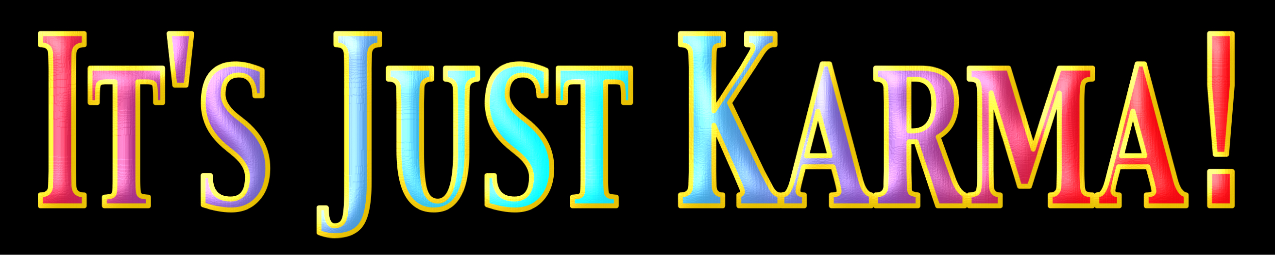 I made this bumper sticker fourteen years ago. Out of a comical situation, the expression arose - to not take things personal, that just bumped into Your life - the reasons for the bump may well be related to previously dished out suffering and pain onto others. So, when stuff happens one could care least about, that's when it's "It's Just Karma" time. One could not possibly know if there wasn't an act of any unkindness in any previous lives. Which of course requires to believe in re-incarnation and such. Interestingly though, there is much more to this as well.