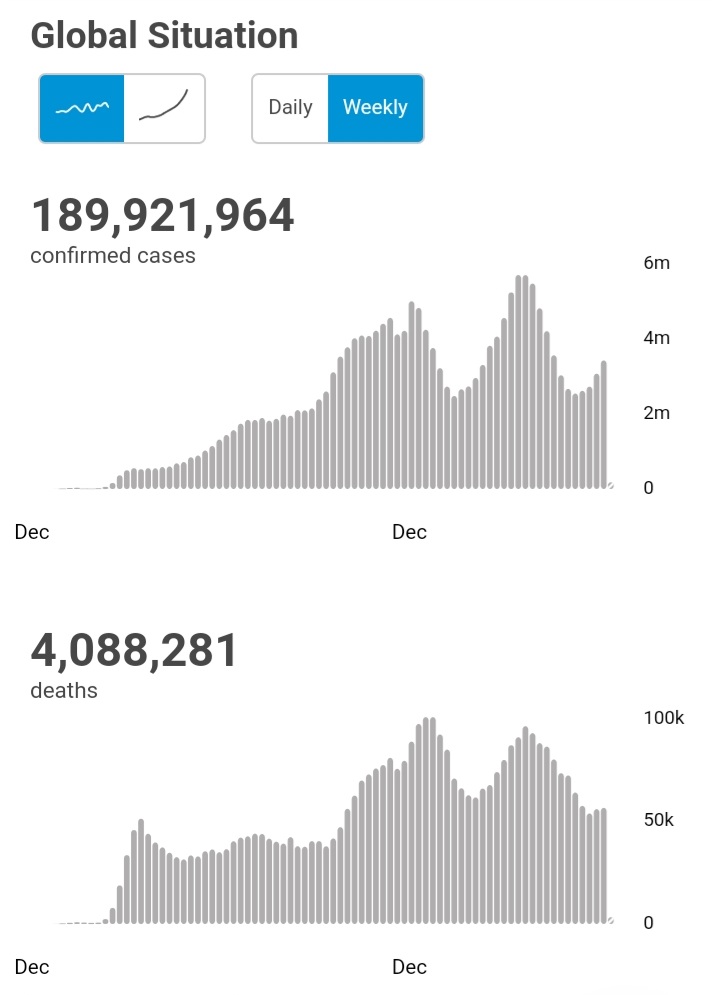 there have been 189,921,964 confirmed cases of COVID-19, including 4,088,281 deaths, reported to WHO.