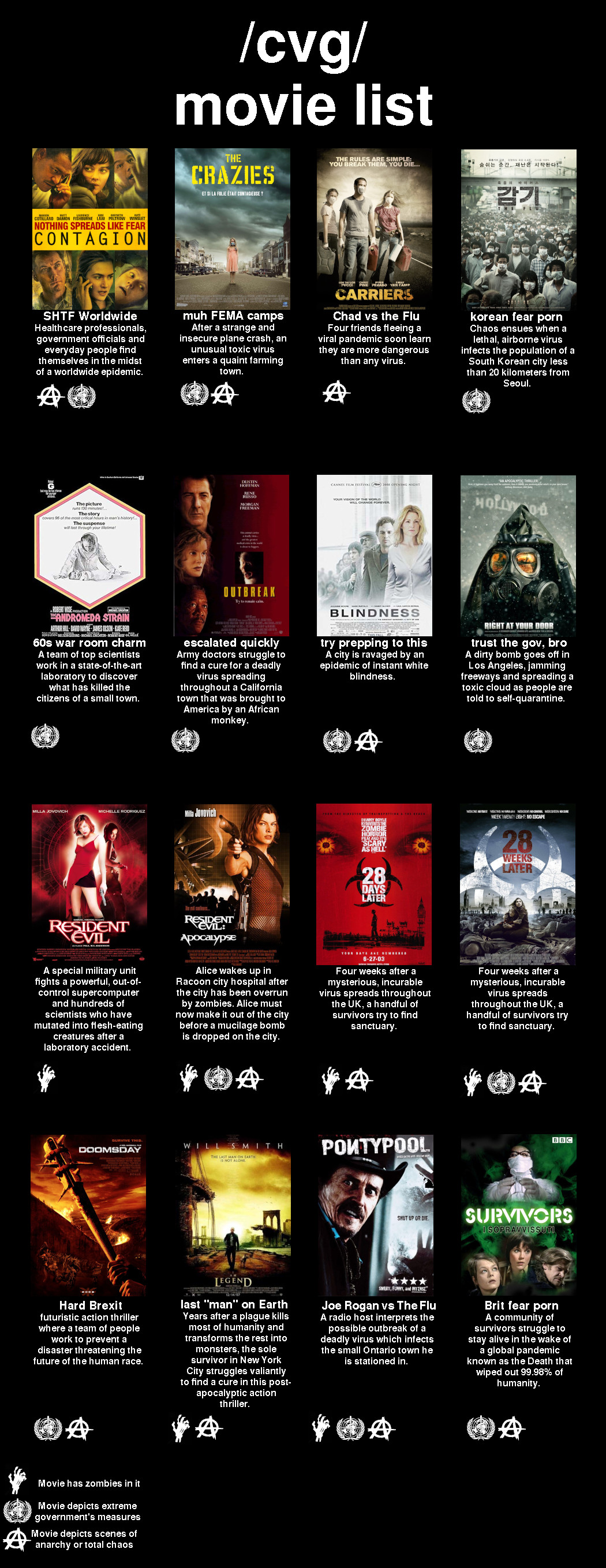 Some viewing suggestions for your quarantine. I suggest Doomsday for good action and a salute to many other movie classics