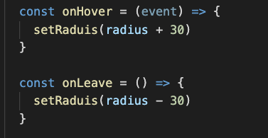 onMouseEnter — when mouse cursor over the path element, function onHover invokes. This function increases the radius of the Ark.