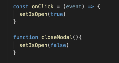 onRequestClose — invoke function closeModal which removes modal from the screen.