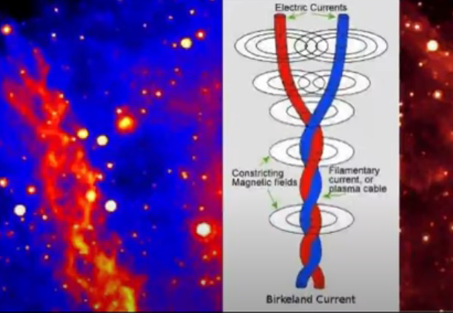 - Space is a plasma environment and not a vacuum. There are charge separations across vast regions of space and, because of those charge separations, we see Birkeland currents arcing across huge regions. Those are twisted pairs of currents which look like DNA/RNA strings.