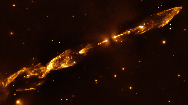 - Typical Herbig/Haro string, You can see the round stars forming along the length of the string wherre the electromagnetic pinch points occur: